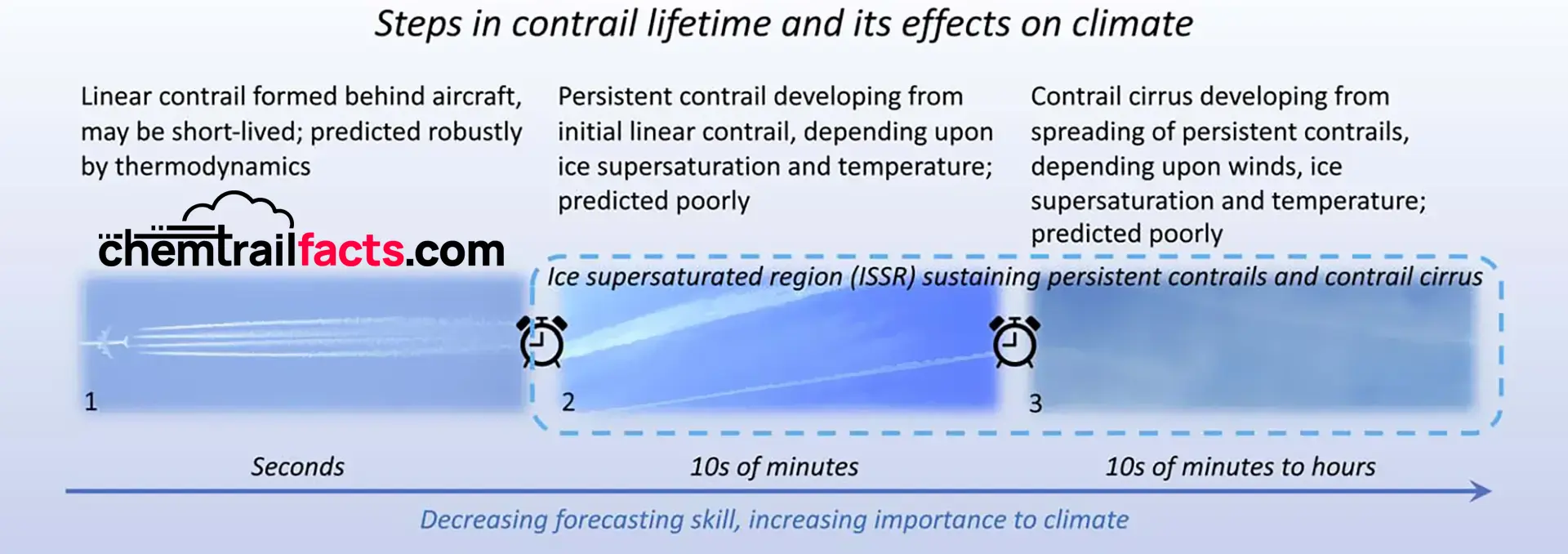 | WHAT ARE THEY | “Contrails disappear. Chemtrails stick around.” | Contrails can spread and turn into man-made cirrus clouds. |