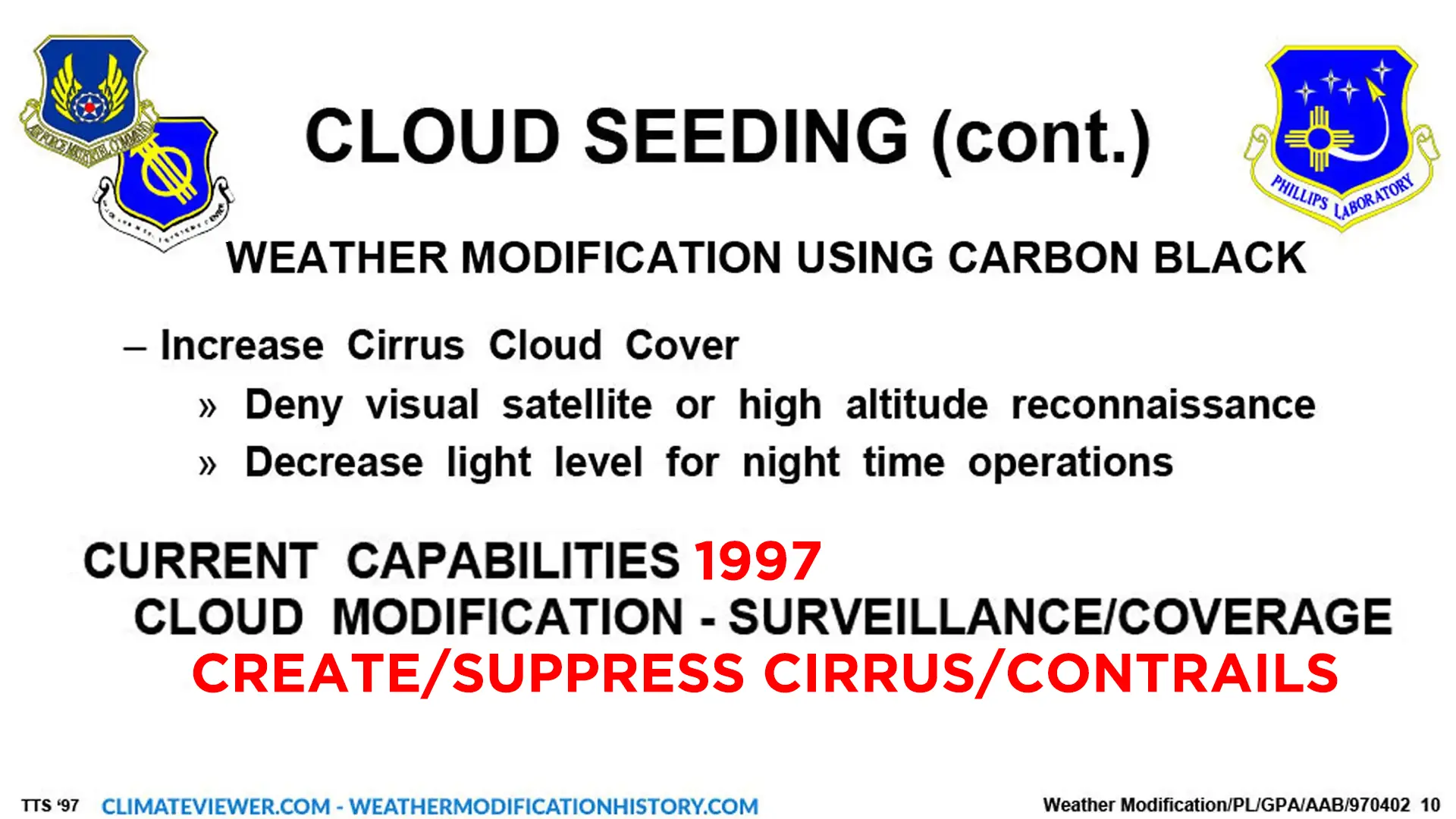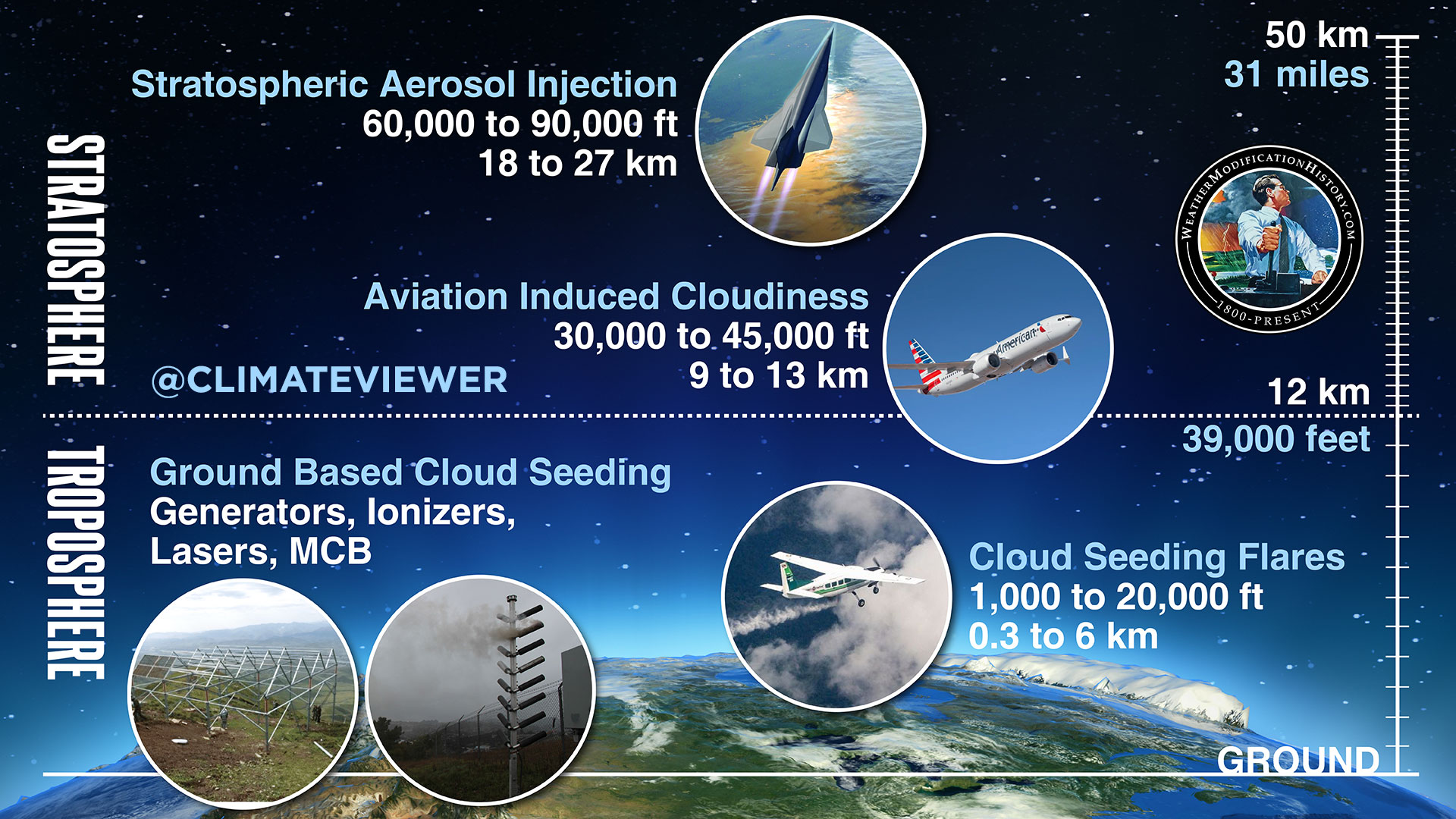 Cloud Seeding, Cloud Ionizers, Lasers, Precipitation Enhancement, Hail Mitigation, Snowpack Augmentation, Hurricane Modification.