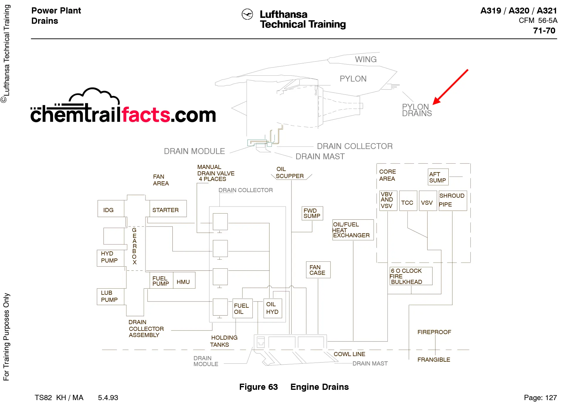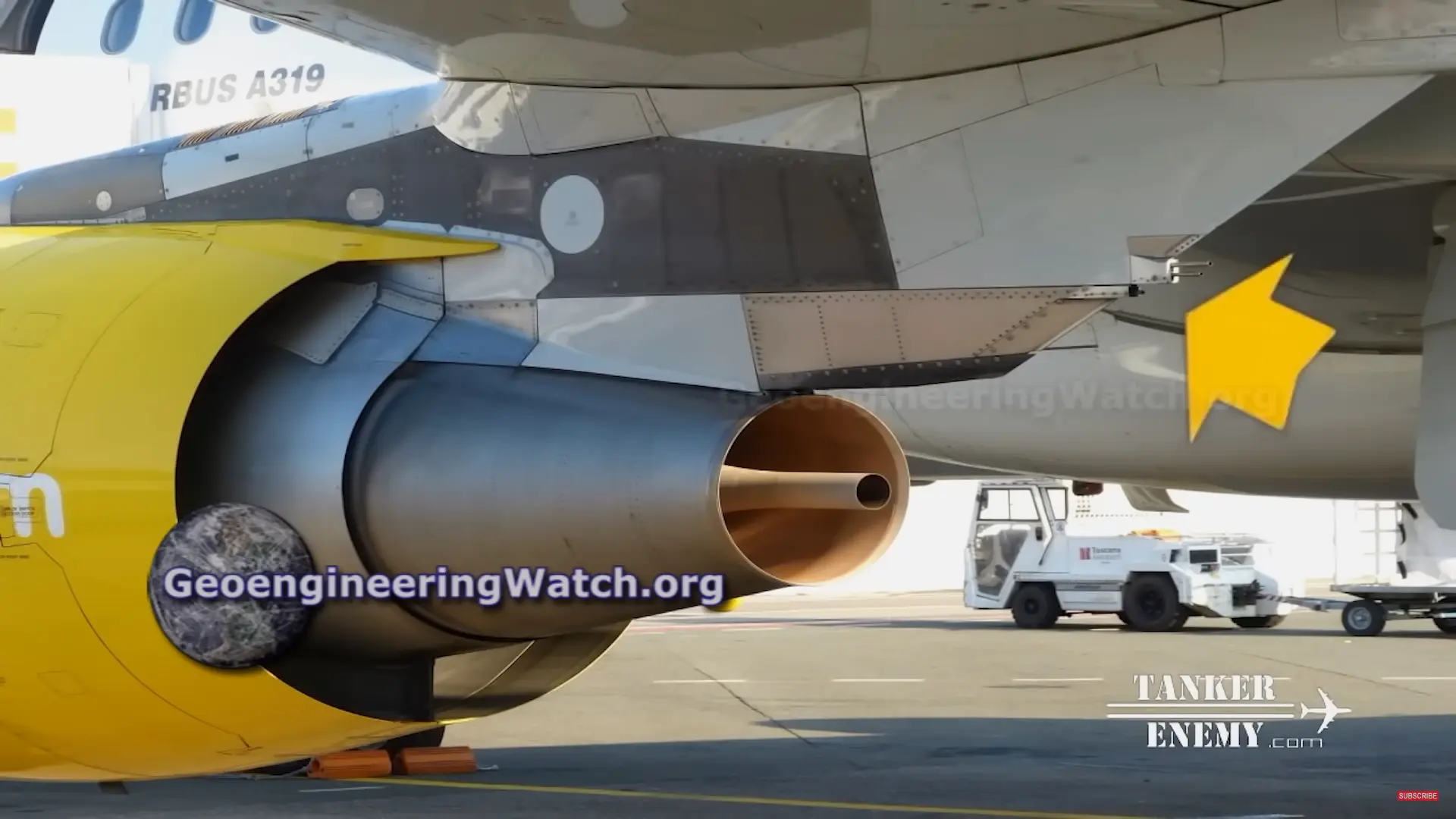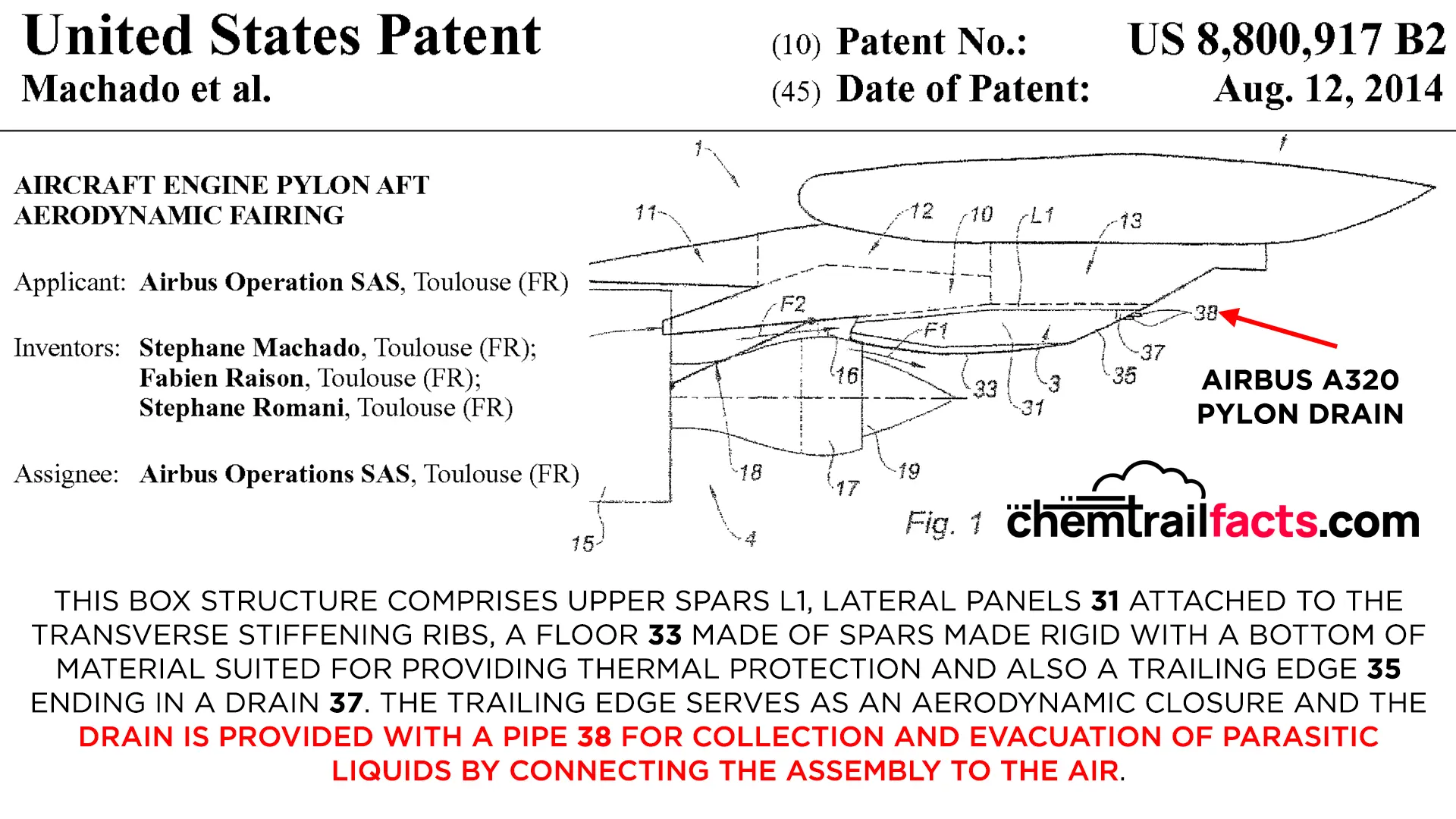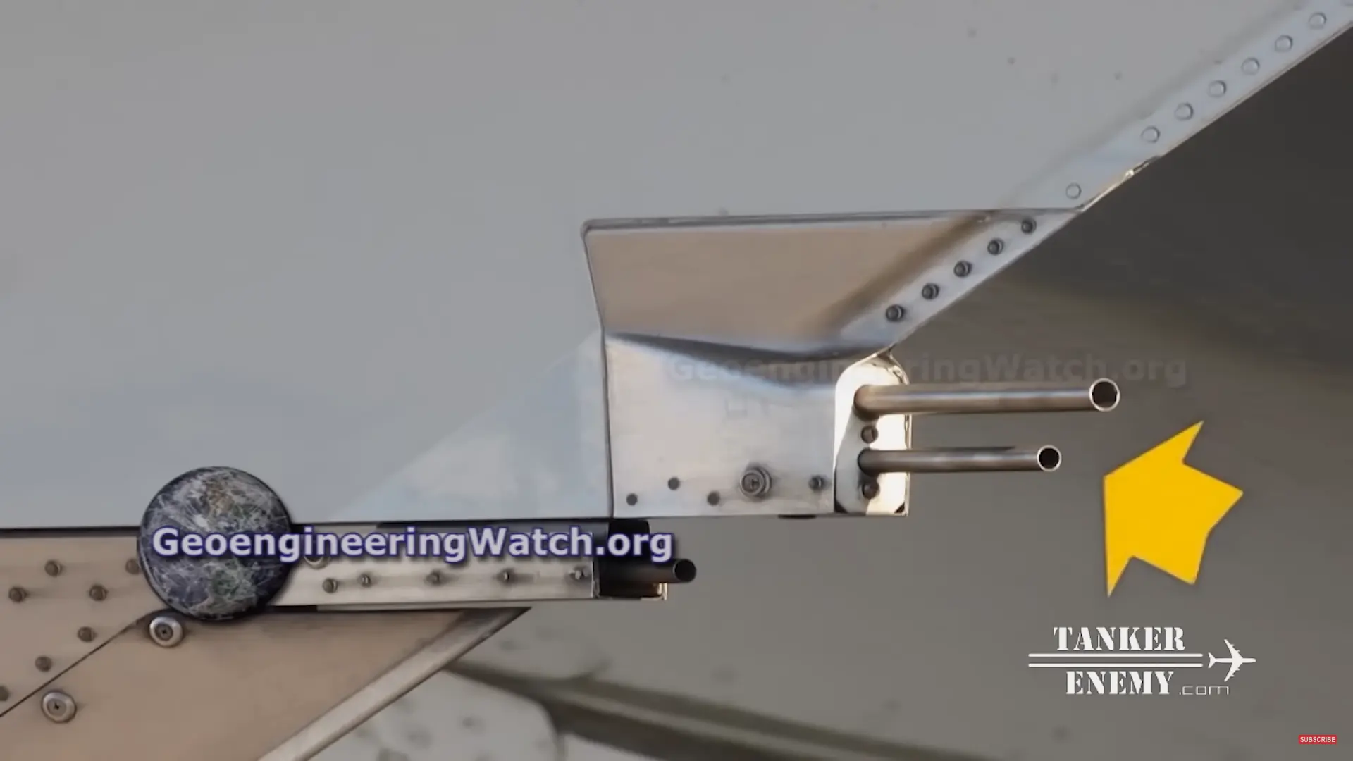 Twenty seconds later into “The Dimming”, Dane shows his proof that these are not contrails but are “intentionally sprayed chemicals” for the purpose of geoengineering: Retro-fitted Spray Nozzles. These are not after-market installed spray pipes. In fact, they are pylon drains installed in the Airbus factory, with the purpose of draining fuel or oil leaks to prevent explosions. This is proven by Airbus patents and training manuals for technicians who do maintenance on the Airbus A319, A320, and A321. More Info.